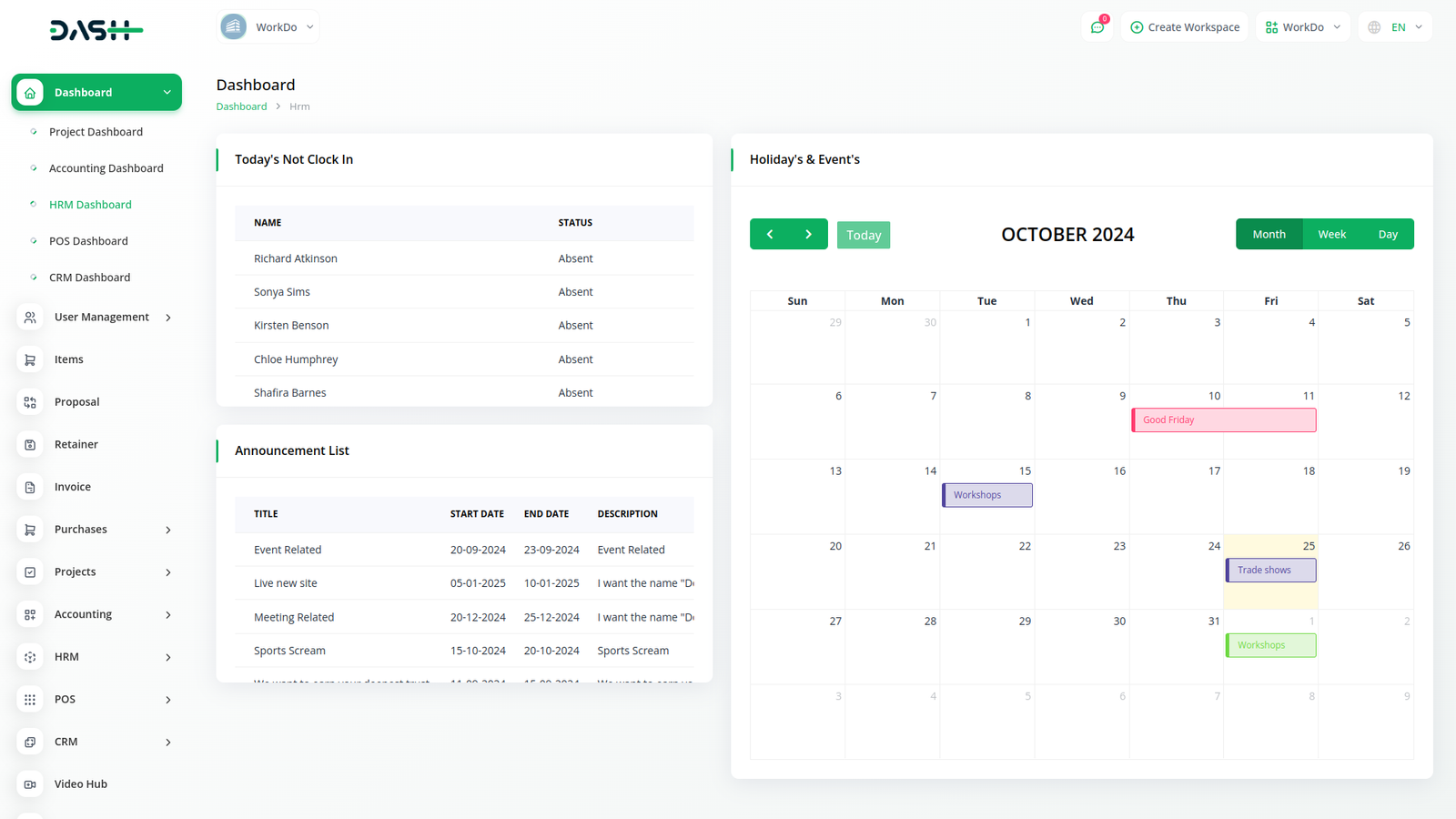 موظفوك هم أعظم أصول عملك. سواء كنت توظف 5 أو 50 أو 500 شخص، مع نظام إدارة الموارد البشرية، يمكنك إدارة جميع شؤون الموظفين. من التوظيف إلى الأداء والرواتب - كل شيء تحت سقف واحد. نظام إدارة الموارد البشرية الكامل قابل للتخصيص ومتعدد الاستخدامات وسهل الاستخدام.