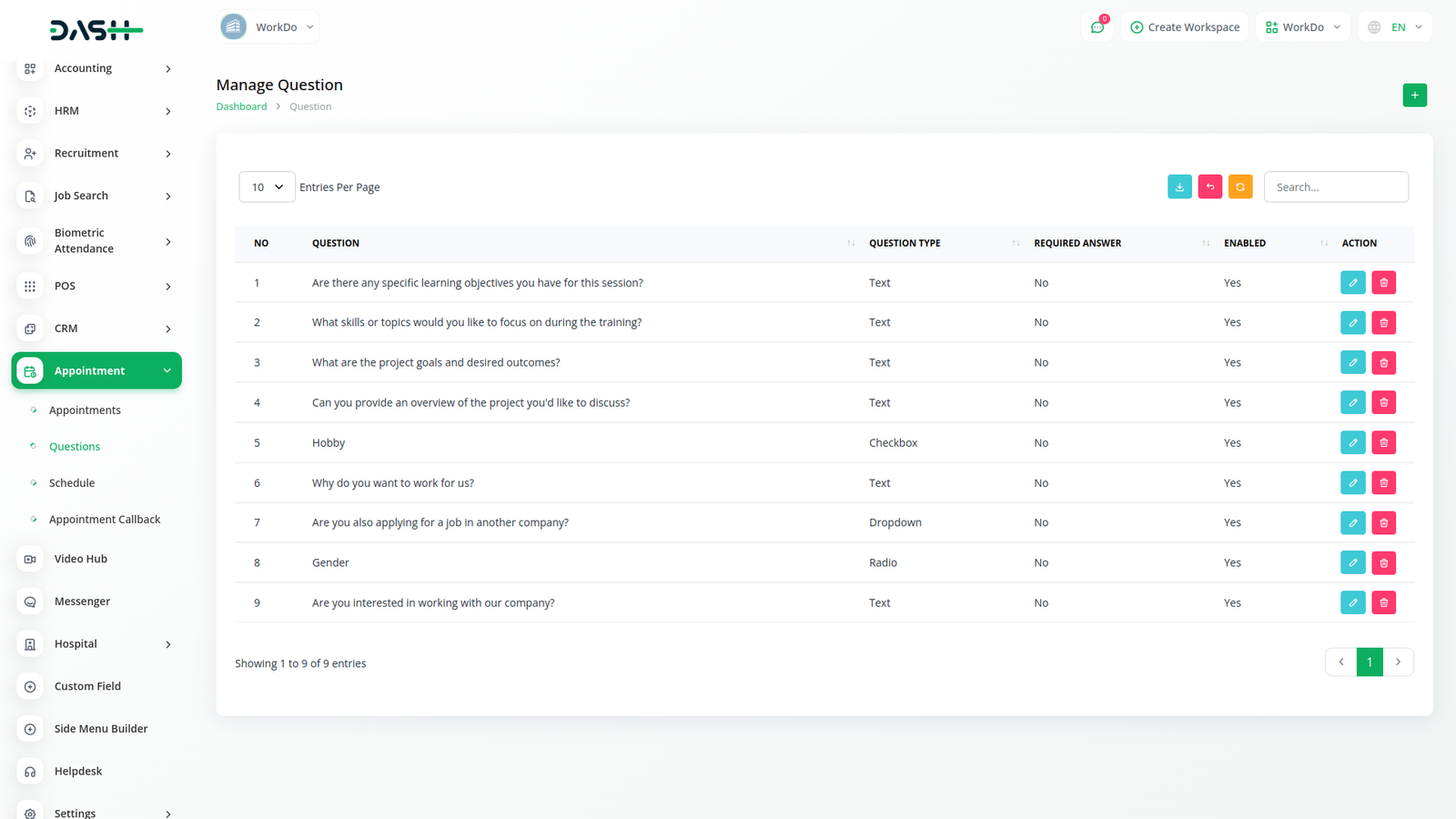 تحتاج فقط إلى تحديد حقل والنوع المناسب من القائمة. هناك أربعة أنواع من الحقول متاحة: النص والراديو والقائمة المنسدلة ومربع الاختيار ستتمكن من عرض السؤال دون أي جهد إضافي. ويمكنك أن تقرر ما إذا كنت ستجعل هذا السؤال إلزاميا أم لا. ويمكنك أيضا أن تقرر ما إذا كنت تريد الاحتفاظ بهذا السؤال في قسم المواعيد أم لا.