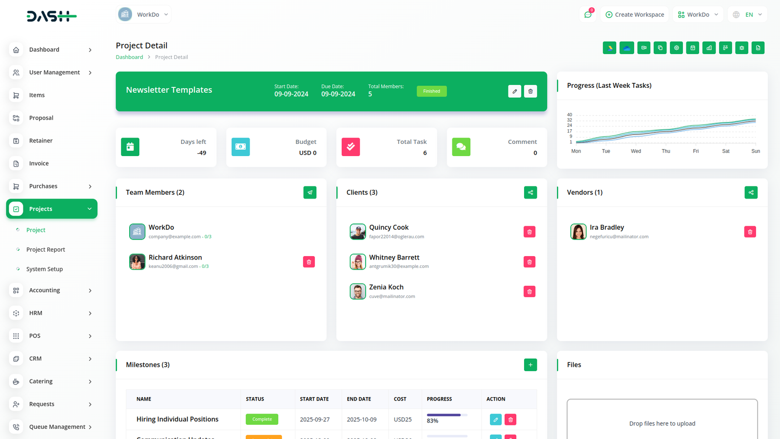 بالإضافة إلى ذلك، يمكنك التحقق من تفاصيل المهام تحت تفاصيل المشروع بمساعدة مخطط جانت.